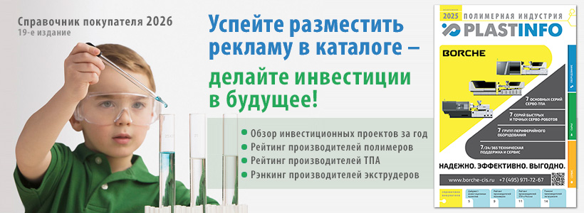 Началась подготовка к выпуску справочника «Полимерная индустрия — 2026»| Тема: Выставки и конференции Аналитическое агентство «Пластинфо.ру» начинает подготовку и прием заявок на рекламу в ежегодном итоговом отраслевом каталоге-справочнике покупателя «Полимерная индустрия — 2026». В 19-м издании традиционно будут опубликованы рейтинги производителей термопластавтоматов и экструзионного оборудования, производителей базовых полимеров, а также обзор реализованных инвестиционных проектов по переработке пластмасс и каучука. ![]() Презентация справочника состоится на ведущей отраслевой Международной специализированной выставке «РУПЛАСТИКА 2026», которая пройдет с 27 по 30 января в московском выставочном центре «Крокус Экспо». В справочнике традиционно будут подведены итоги работы российской индустрии полимеров за прошедший год. Редакция выделяет наиболее значимые отраслевые проекты по производству сырья и готовых пластмассовых изделий. Выбранные проекты в целом представляют интересную и показательную подборку данных, достаточных для общей оценки тенденций развития переработки полимеров в России. Заметную часть в справочнике занимает перечень компаний, отобранных и классифицированных редакцией по предлагаемому сырью, оборудованию и отраслевым услугам. В электронном виде 19-е издание справочника «Полимерная индустрия — 2026» станет доступно для бесплатной загрузки всем пользователям портала Plastinfo.ru, а также будет распространяться на отраслевых мероприятиях в течение всего 2026 года. Успейте зарезервировать место для продвижения своей компании! Загрузить актуальный справочник Цены на рекламу в печатном каталоге Справочник «Plastinfo. Полимерная индустрия» зарегистрирован в Федеральной службе по надзору в сфере связи и массовых коммуникаций. Свидетельство о регистрации средства массовой информации: ПИ №ФС77–33780 от 28.10.2008 г. Наши новости в Telegram ПРЕДЫДУЩИЕ НОВОСТИ НОВОСТИ ПО ТЕМАМ Присылайте информацию о событиях, связанных с полимерной отраслью. Воспользуйтесь эффективным инструментом для привлечения покупателей и расширения рынка сбыта. Новости о начале производства изделий, изменении цен и новых разработках публикуются бесплатно! По вопросам публикации новостей обращайтесь в редакцию: Полное или частичное копирование любых материалов, опубликованных на Plastinfo.ru, для размещения на других Интернет сайтах, разрешается только с указанием активной гиперссылки на plastinfo.ru ! Полное или частичное использование любых материалов, размещенных на Plastinfo.ru, в СМИ, печатных изданиях, маркетинговых отчетах, разрешается только с указанием ссылки на «Plastinfo.ru» и в некоторых случаях требует письменного разрешения ООО Пластинфо |