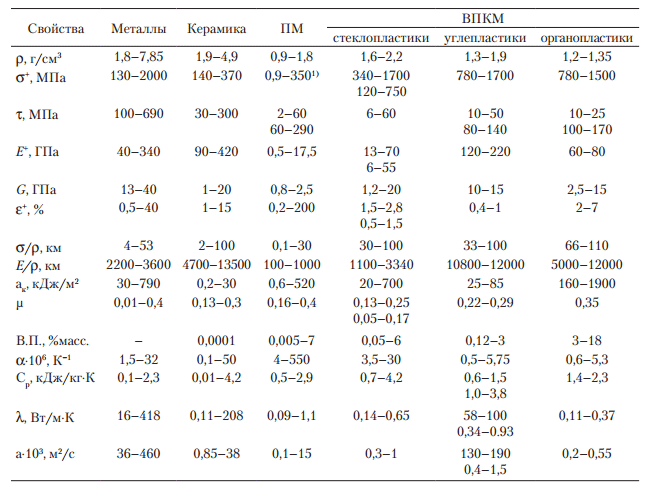 СТАТЬИ И ОБЗОРЫ ПКМ с полимерными волокнами в качестве наполнителей| Тема: Технологии «Конструкционные полимерные композиционные материалы» Органопластики (ОП) — полимерные КМ на основе высокопрочных волокон типа СВМ, Kevlar, Русар с σ+ до 3 ГПа, Е+ до 180 ГПа, волокон из СВМПЭ с σ+ 2–2,5 ГПа, Е+ до 200 ГПа, волокон из полиариленов, полигетероариленов Ekonol с σ+ 3,5–4,2 ГПа, Е+ до 130–140 ГПа, ПЭЭК с σ+ до 1,5 ГПа, Е+ до 160 ГПа, PBZ c σ+ 3,0–4,5 ГПа, Е+ до 300–400 ГПа, ПФБТ с σ+2,7–5,6 ГПа, Е+ до 200–330 ГПа (см. табл.), имеют высокие значения удельной прочности и жесткости при растяжении, высокую усталостную и длительную прочность, трещиностойкость, устойчивость к механическим и абразивным воздействиям. ОП обладают высокими электро-, тепло- и звукоизоляционными свойствами, достаточно стабильны в условиях длительного воздействия различных климатических факторов. На основе высокопрочных высокомодульных полимерных волокон получен широкий ассортимент армирующих наполнителей для изготовления ОП различного назначения: нити, жгуты, ленты, маты, холсты, нетканые материалы, бумаги. Органопластики технологичны и перерабатываются всеми способами, ранее разработанными для стеклопластиков. Органопластики – многофункциональные материалы. В зависимости от состава и структуры они могут применяться для изготовления изделий различного назначения: конструкционного, электро- и радиотехнического, теплоизоляционного, для защиты от механического и баллистического поражения, воздействия агрессивных сред и др. Органопластики отличаются от типичных представителей ПКМ полимерной природой обоих компонентов – волокна и матрица. ОП, наполненные волокнами из гибкоцепных полимеров, материалы, в которых наиболее выгодно используются свойства этих волокон (высокие диэлектрические и теплофизические свойства химическая стойкость, трибологические характеристики). Органопластики с высокопрочными, высокомодульными волокнами являются конструкционными материалами, отличающимися низкой плотностью (1,3 г/см3), высокой удельной прочностью при растяжении до 260 км и удельной жесткостью до 12300 км. Для материалов этого типа характерна многофункциональность — сочетание высокой несущей способности с высоким диэлектрическими, теплофизическими, теплозащитными свойствами. Совершенствование существующих и создание новых органопластиков связано как с использованием волокон с σ+ до 5,5 ГПа, Е+ до 160–180 ГПа, на основе модифицированных полиарамидов (ВМН-88), карбо- и гете-роциклических полимеров (например, поли-n-фениленбензбитиазолы, ПФБТ), в том числе жидкокристаллических (Ekonol, Vectran, полифениленсульфидных, ПЭЭК, на основе сверхвысокомолекулярного полиэтилена (Spectra 900, 1000, Dyneema, Tekmilon), так и связующих с оптимальными упругопрочностными свойствами.Прочность однонаправленных ОП на основе нитей и жгутов СВМ, Армос и Терлон в зависимости от степени наполнения достигает соответственно 2,5–2,8; 2,7–3,3 и 1,4–2,2 ГПа. Модуль упругости однонаправленных ОП на основе нитей и жгутов данного класса составляет 85–100 ГПа. Имея более низкую плотность, эпоксидные ОП превосходят по удельной прочности стеклопластики почти в 2 раза, а по удельному модулю уступают только углепластикам. Сравнительно низкие показатели σ– ОП повышаются в поливолокнистых (гибридных) органостекло-, органоуглепластиках. Для повышения τсд (40–60 МПа в