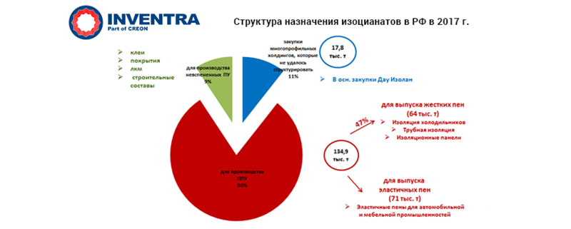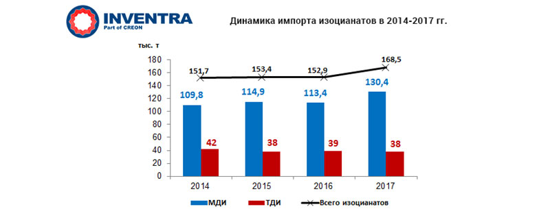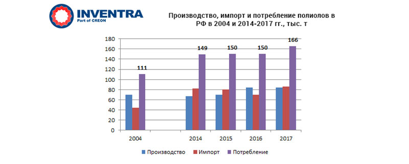 СТАТЬИ И ОБЗОРЫ В режиме ожидания: пост-релиз конференции «Полиуретаны 2018»| Тема: Технологии Мировой полиуретановый рынок, всегда отличавшийся довольно консервативным характером, в прошедшем году преподнес игрокам сюрприз, и сюрприз неприятный. Цены на изоцианаты, в последнее время бывшие относительно стабильными, резко подскочили. Это поставило под удар российских переработчиков и затормозило развитие отрасли в целом. Одиннадцатая международная конференция «Полиуретаны 2018», организованная компанией INVENTRA, состоялась в Москве 26 февраля. Мероприятие прошло при поддержке Минпромторга России, Ассоциации производителей напыляемого пенополиуретана (АПНППУ) и Национальной Ассоциации производителей панелей из ППУ (НАППАН), а также FAPU. «Уже не первый год мы обсуждаем перспективы появления в России собственного изоцианатного производства, — обратился к присутствующим генеральный директор INVENTRA Рафаэль Григорян. — Проекты ежегодно прибавляются, но все они остаются лишь на бумаге. Разные инвесторы, разные объемы, разные сроки реализации — однако без активной поддержки государства ничего сделано не будет. А ее нет и пока не предвидится». Началась конференция не совсем по плану — слово взял технический директор компании «Карбамат» Глеб Гладковский. По его словам, совсем скоро полиуретановую отрасль ожидает непростой период. «Есть информация, что Россия откажется от приема опасных грузов на все время проведения ЧМ-2018 по футболу, — сообщил эксперт. — Это означает, что мы на два месяца останемся без изоцианатов, причем в самое „горячее“ время. Также ходят слухи об обязательной консервации опасных производств на время чемпионата в тех регионах, где состоятся матчи». Как утверждает г-н Гладковский, своими глазами это постановление он не видел, однако звучит все вполне правдоподобно. А значит, необходимо донести до государства поспешность и нецелесообразность такого решения — прежде всего, через обращение от имени ПУ-отрасли. Для синтеза полиуретанов используются различные полиолы: простые полиэфиры, сложные полиэфиры, полимер-полиолы и пр. Как рассказал аналитик группы CREON Андрей Шифрин, основным сырьем для получения простых полиэфиров является окись пропилена, которую в России в больших объемах выпускает только «НКНХ». Небольшим (по сравнению с «НКНХ») производителем является кемеровский «Химпром» (4 тыс. т/год против 70 тыс. т/год в Нижнекамске). Всю произведенную окись пропилена «НКНХ» направляет на собственные нужды, выпуская простые полиэфиры. По итогам 2017 г. объем их производства достиг 77 тыс. т. По итогам 2017 г. импорт полиолов в Россию составил 86 тыс. т, это на 23% выше уровня предыдущего года. Как сообщил Андрей Шифрин, из этого количества на простые полиэфиры пришлось 79 тыс. т, на сложные — 7 тыс. т ![]() В структуре импорта наибольшая доля — 47% — пришлась на полиолы для жестких пен, на полиолы для эластичных пен — 36%. Это связано с тем, что полиолы для эластичных пен выпускает «НКНХ», соответственно, есть необходимость в поставках сырья для жестких пен. ![]() В импорте простых полиэфиров 90% составляют базовые полиолы, остальное — композиции полиолов специального назначения. Потребление полиолов в России по итогам 2017 г. увеличилось примерно на 10% и достигло 166 тыс. т. Рост отмечен впервые за последние четыре года, до этого уровень