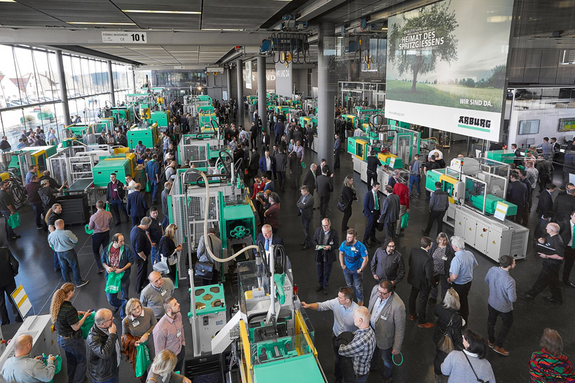 Гибридные высокоэффективные ТПА Allrounder Hidrive сочетают в себе высокую скорость и точность электропривода, а также мощность и динамику гидравлической системы. Тот факт, что такие ТПА предназначены для высокоскоростных процессов, которые часто встречаются в упаковочной промышленности, был продемонстрирован на примере Упаковочной версии (Packaging) ТПА Allrounder 630 H, на котором за один цикл продолжительностью 6,4 с из ПС формуется сразу 20 одноразовых ложек. На гибридном Allrounder 820 H новой конструкции с новой системой управления Gestica в 48-гнездной форме получались резьбовые крышки с продолжительностью цикла 12,7 с. Было представлено два технически интересных варианта применения, касающихся переработки жидкого силикона (LSR): Свобода формования: восемь установок для аддитивного производства Freeformer Комплексность: на мероприятии всячески очерчивалась программа поддержки Более 1600 участников ознакомились с информативной презентацией на немецком и английском языках на тему легких конструкций, концепции Efficiency 4.0, системы управления Gestica и процесса Arburg Plastic Freeforming (APF). Более 1800 посетителей из Германии воспользовались возможностью посетить предприятие фирмы (в рамках экскурсии) и ознакомиться со всеми стадиями производства оборудования. Всем международным группам посетителей компания представила информацию о своих филиалах и торговых партнерах в соответствующих регионах на их родных языках. СТАТЬИ ПО ТЕМАМ