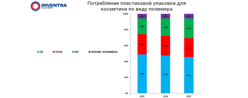 СТАТЬИ И ОБЗОРЫ «Полимеры в упаковке и парфюмерно-косметической индустрии 2018»: упакуйте, беру!| Тема: Обзоры рынков Российский рынок полимерной упаковки, несмотря на все трудности, развивается в соответствии с меняющимися требованиями потребителей, особенно в сегменте пищевой упаковки, которая в наши дни, помимо основной функции, также должна обеспечить производителю узнаваемость и защиту бренда, уменьшить растущее число контрафакта, «продать» товар и быть eco-friendly. 18 апреля в Москве прошла Тринадцатая международная конференция «Полимеры в упаковке и парфюмерно-косметической индустрии 2018», организатором которой выступила компания INVENTRA (в составе группы CREON). Мероприятие прошло при поддержке выставки interplastica. Генеральным информационным партнером стал журнал «Полимерные материалы». «На наших мероприятиях неоднократно звучало утверждение, что именно сегмент полимерной упаковки является одним из наиболее перспективных направлений переработки полимеров в России. Более того, это — драйвер роста рынка в целом. Актуально ли утверждение на сегодняшний день? С одной стороны, продуктовое эмбарго никто не отменял, отечественные продукты, замещающие импорт, нужно во что-то упаковывать. С другой стороны, мы видим четкий тренд на экологичность, запрет некоторых видов упаковки из полимеров, а также общее снижение покупательской способности населения. Говоря о сегменте непищевой упаковки, стоит отметить, что не так давно в Минпромторге прошло несколько совещаний, где обсуждались вопросы импортозамещения как самой косметики и парфюмерии, так и упаковки для нее. Данному вопросу мы посвятили отдельное заседание с целью разобраться, что же происходит на самом деле», — отметил генеральный директор INVENTRA Рафаэль Григорян, открывая конференцию. В 2017 г. общий объем российского рынка упаковки составил 16–18 млрд долл., где общая доля рынка полимерной упаковки занимала 32%, и в процентном соотношении с ней могут конкурировать только картонная и бумажная упаковки, на которые в совокупности также приходилось 32%, с таких данных начал свой доклад председатель технического комитета по стандартизации №223 «Упаковка» РОССТАНДАРТа Петр Бобровский. Сегодня, по словам г-на Бобровского, упаковка стала частью системы обеспечения прослеживаемости, благодаря которой можно ускорить логистические операции, улучшить сохранность товара и сократить потери. Например, использование RFID-меток в логистике, «умная» упаковка как часть «интернета вещей» (Internet of things). Другая тенденция — маркировка, обусловленная обязательными требованиями к продукции: QR-код, RFID, NFC и др. Среди тенденций, которые будут оказывать влияние на рынок в будущем, эксперт видит устойчивое развитие и «циркулярную» экономику. Примером может служить проект EU Plastics Strategy, основной целью которого является переработка 10 млн т полимерных отходов в конкретные товары к 2025 г. Европейская комиссия предлагает каждой отрасли принять добровольные обязательства в рамках Стратегии. Несмотря на культивируемый в обществе негатив по отношению к полимерной упаковке, связанный с экологическими трендами, сегмент продолжит развиваться и дальше. Говоря о расширенной ответственности производителя, выступающий отметил, что, наряду с имеющимися обязательными требованиями по утилизации упаковки, необходимо ра