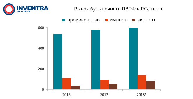 СТАТЬИ И ОБЗОРЫ INVENTRA: рынок ПЭТФ 2018 - куда движемся?| Тема: Обзоры рынков Предыдущий год показал достаточно интересную картину на мировом рынке ПЭТФ: годовое производство приблизилось к 30 млн т, а спрос составил порядка 23 млн т. Из таких цифр следует, что на мировой арене должен был появиться профицит, а на деле — никаких излишков. Сложившуюся ситуацию можно объяснить тем, что в первой половине 2018 г. отрасль столкнулась с проблемой: часть производственных мощностей некоторых предприятий была заморожена по причине остановок на техническое обслуживание и форс-мажоров на заводах. В начале 2019 г. введены новые демпинговые и антисубсидирующие меры в отношении Китая и Японии, которые приведут к перераспределению потоков импорта и экспорта ПЭТФ. Потребители продукта должны быть готовы к быстрой омологации новых материалов от разных поставщиков. Российский рынок в прошлом году ожидал внушительный рост спроса на ПЭТ-тару в связи с проведением чемпионата мира по футболу, но все вышло иначе: потребление ПЭТФ, как и предполагалось, выросло на 6%, однако вследствие ряда форс-мажоров у производителей, образовался дефицит сырья, и цены на полимер взлетели до 140 тыс. рублей за тонну. Сейчас цены на ПЭТФ снизились, но в то же время объективных причин для серьезного роста потребления нет. Возможно, в сложившихся реалиях как новым, так и уже существующим игрокам рынка стоит задуматься о более маржинальных продуктах из ПЭТ: волокнах, нитях, пленках и листах. Так в России уже в ближайшем будущем появятся линии по выпуску БОПЭТ-пленок для промышленной и пищевой упаковки, ламинирования, а также термоусадочных, электротехнических и защитных пленок. Данные производства должны запуститься до 2020 г. в рамках проекта завода по переработке полимеров «Титан-Полимер». Кроме того, до 2022 г. компания запустит комплекс по выпуску ПЭТФ-гранулы мощностью до 170 тыс. т в год. Сейчас же ориентировочное потребление БОПЭТ-пленок внутри страны находится на уровне 32 тыс. т, 20 тыс. т из которых импортируется, остальное производится компанией Retal. В свою очередь, мировое производство химических волокон и нитей к 2020 г. может превысить 83 млн т, сейчас более 70% рынка занимают полиэфирные волокна и нити, а главный производитель — Азия. В России производство к 2020 г. может составить около 300 тыс. т при внутреннем потреблении 500 тыс. т. СТАТЬИ ПО ТЕМАМ