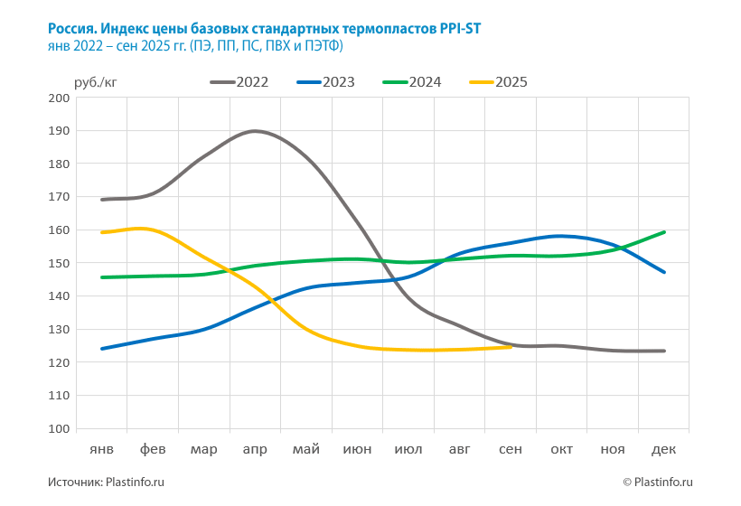 Россия. Цены на базовые полимеры держатся на пятилетнем минимуме| Тема: Цены на сырье и изделия Индекс цены пяти базовых крупнотоннажных термопластов в России PPI-ST, рассчитываемый аналитическим агентством Plastinfo, по итогам сентября вырос к августу на 0,6% и составил 124,6 пункта, что к сентябрю 2024 года меньше на 18,1%. Всего с начала 2025 года базовые полимеры подешевели в среднем на 21,7%. В сентябре цены развернулись вверх во всех сегментах, кроме ПС и ПЭНП. Рекордсменом роста стал ПЭВП, подорожавший в преддверии остановок на техобслуживание двух ведущих производителей. При этом на фоне ослабления курса рубля снизился спрос на иранские марки линейного полиэтилена (ЛПЭНП). ![]() В сегменте полипропилена (ПП) оживился спрос также в преддверии плановой остановки производителей. В то же время сводный индекс полистирола (ПС) сократился вместе со спросом. В сегменте суспензионного поливинилхлорида (ПВХ-С) в сентябре спрос был выше августа, но на среднем уровне. Отмечался дефицит марок ПВХ-С одного из ведущих производителей. Цены на ПЭТФ в течение сентября неоднократно менялись, но в итоге выросли относительно уровня августа в среднем на 1,9%. Основными драйверами выхода на растущий тренд стали как плановые остановки на техобслуживание, так и высокая волатильность курса рубля в ожидании снижения ключевой ставки. Сегодня индекс цены базовых термопластов PPI-ST держится на минимальном за пять лет уровне, если не учитывать данные января 2021 года. Рост стоимости полимеров ограничивает как относительно крепкий рубль и зарубежная конъюнктура, так и сокращение спроса во многих секторах переработки пластмасс: индекс производства пластмассовых и резиновых изделий в России за январь-август 2025 года упал по отношению к аналогичному периоду предыдущего года на 6,8%, согласно данным Росстата. Самый подробный в России ежемесячный мониторинг с 2007 года цен на первичные и вторичные полимеры у агентства Plastinfo.ru доступен по подписке. Наши новости в Telegram НОВОСТИ ПО ТЕМЕ ПРЕДЫДУЩИЕ НОВОСТИ НОВОСТИ ПО ТЕМАМ Присылайте информацию о событиях, связанных с полимерной отраслью. Воспользуйтесь эффективным инструментом для привлечения покупателей и расширения рынка сбыта. Новости о начале производства изделий, изменении цен и новых разработках публикуются бесплатно! По вопросам публикации новостей обращайтесь в редакцию: Полное или частичное копирование любых материалов, опубликованных на Plastinfo.ru, для размещения на других Интернет сайтах, разрешается только с указанием активной гиперссылки на plastinfo.ru ! Полное или частичное использование любых материалов, размещенных на Plastinfo.ru, в СМИ, печатных изданиях, маркетинговых отчетах, разрешается только с указанием ссылки на «Plastinfo.ru» и в некоторых случаях требует письменного разрешения ООО Пластинфо |