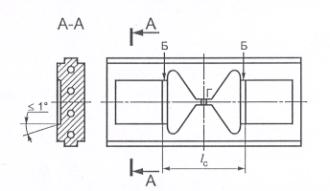 Г – центральный литник с диаметром со стороны сопла не менее 4 мм; Б – впускной литник; lс – расстояние между линиями, вдоль которых образцы для испытаний отрезаются от распределительных литников.