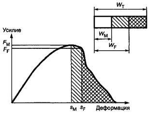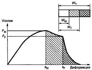 Энергию при максимальном усилии WM и энергию при разрушении WF рассчитывают по формулам (7) и (8) соответственно: