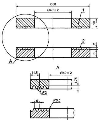 1 - зажимное кольцо; 2 - опора для испытуемого образца