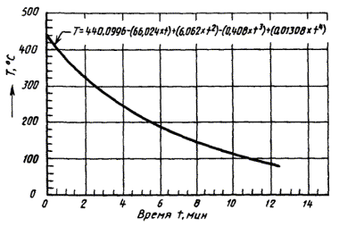 Рисунок 4 - График зависимости температуры барабана от времени при охлаждении