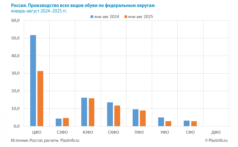Россия. Производство обуви и число производителей сокращается| Тема: Обзоры и анализ рынков Число производителей и продавцов обуви в России с сентября 2024 года сократилось на 289 компаний, включая крупные фабрики и ИП, которые регистрировали импортную продукцию как российскую. Среди причин закрытия в материале «Ъ-Review» указываются санкции, удорожание материалов, конкуренция с импортом, а также сокращение покупательской активности из-за стремления к экономии. По данным на 1 сентября 2025 года, в России работали 853 юридических лица, занимающихся производством обуви, что на 134, или 13,5%, меньше относительно предыдущего года, согласно анализу сервиса «Контур. Фокус». При этом темпы регистрации компаний в этом сегменте снижаются. Если в январе — августе 2024 года на рынке появилось 58 новых производителей, то за восемь месяцев 2025-го — только 16. За этот же период с рынка ушли 120 производителей обуви, что в 2,5 раза больше, чем годом ранее. ![]() В конце прошлого года сообщалось о закрытии обувных фабрик челябинской компании «Юничел» в Златоусте и Оренбурге, а в Брянске примерно в то же время закрылась фабрика Francesco Donni («Стелла Плюс»), проработавшая 25 лет. Это сказывается на объемах выпуска обуви в стране, который за восемь месяцев 2025 года составил 78,5 млн пар, что на 27,9% меньше показателя 2024 года за аналогичный период, согласно данным Росстата. Наибольшее число обувных производств сконцентрировано в Москве и Московской области, отмечают аналитики. По данным на 1 сентября 2025 года, в столице было зарегистрировано 132 юрлица, указавших производство обуви основным видом деятельности, а в Подмосковье — 71. В этих же регионах фиксируется наибольшее количество закрытий бизнесов за год: в Москве производителей стало меньше на 37,7%, в области — на 34,2%. Среди регионов — лидеров по числу зарегистрированных производителей обуви аналитики также называют Санкт-Петербург (52 юрлица, минус 3,7% год к году), Ростовскую область (49 юрлиц, минус 7,55%), Дагестан (42 компании, минус 2,33%). Невысокими темпами, но растет число зарегистрированных обувных производств в Тульской (всего 24, за год прибавилось 3) и Ярославской (всего 23 компании, за год зарегистрирована 1 новая) областях. Согласно данным Росстата, проанализированным Plastinfo, производство обуви в России за январь-август 2025 года составило 78,5 млн пар, что на 24,5% меньше показателя 2024 года за аналогичный период. Производители обуви и подошв из полимеров При этом производство обуви в Центральном федеральном округе (ЦФО) упало на 39,6% — до 31,3 млн пар. Наибольшее снижение произошло в Уральском федеральном округе (УФО), где падение составило 43,6%. В то же время производство обуви в Северо-Западном федеральном округе (СЗФО) выросло на 8,4% и составило 4,7 млн пар. За последние несколько лет власти усилили борьбу с контрафактом, в том числе посредством системы маркировки, внедренной в обувной отрасли в 2020 году. В итоге с рынка ушло большое количество фиктивных производителей. Однако их до сих пор продолжают выявлять в большом количестве. Наши новости в Telegram НОВОСТИ ПО ТЕМЕ ПРЕДЫДУЩИЕ НОВОСТИ НОВОСТИ ПО ТЕМАМ Присылайте информацию о событиях, связанных с полимерной отраслью. Воспользуйтесь эффективным инструментом для привлечения покупателей и расширения рынка сбыта. Новости о начале производства изделий, изменении цен и новых разработках публи