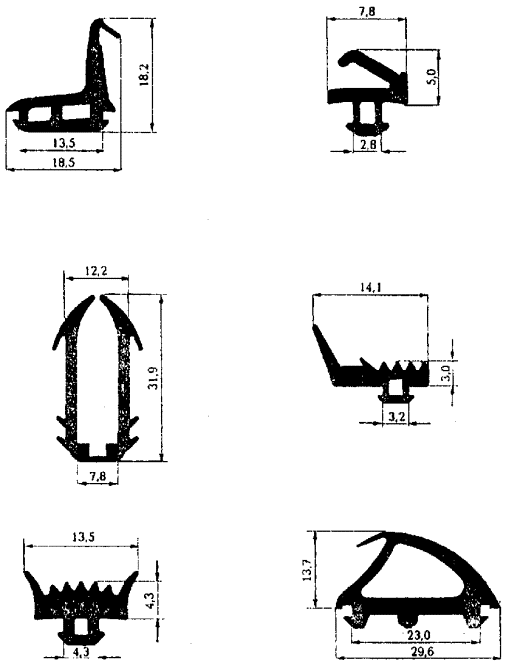 Примеры сечений уплотнителей